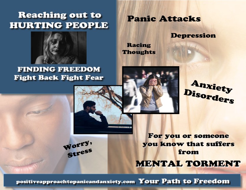 This blog is not only for those dealing with PANIC ATTACK and ANXIETY but it can also help those with things like depression, exorbitant worry, uncontrolled thoughts, excessive, and abnormal stress… once you understand the mind you can start taking back control of your life. Let’s get your mind working for you not against you. Let’s get the word out that there is a positive approach to mental torment through proper understanding of how the body and mind works and from those who have become free sharing what worked for them.