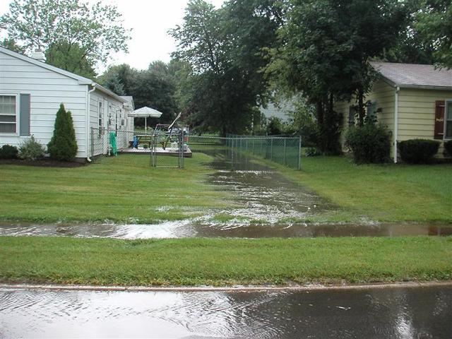 For a moment let us use our imagination and picture a drainage ditch in front of your house. Because of years of neglect or turbulent waters that come with hard rains, the water WILL find its way to breach the ditch at the weakest location. Water spills onto your lot and floods your yard! As the water rushes onto your property, it will wash away good soil and a rut will become established. Depending on the yard the water will either create a natural rain garden in an unwanted place or continue on its path rushing forward to the next lowest location.