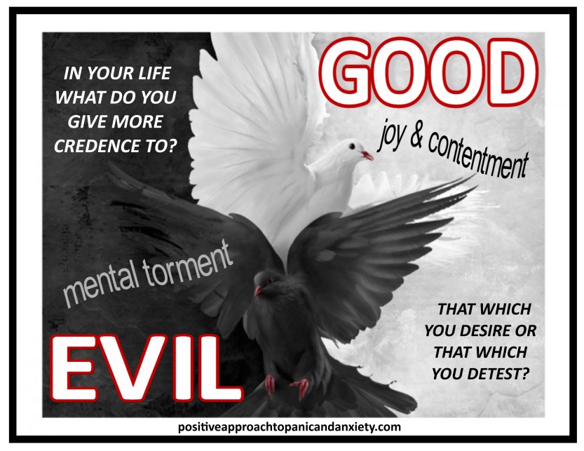 Let us dissect this undesirable enemy that attempts to create a slippery slope for your thoughts to travel that leads you on the path of deception. A deception that causes fear, confusion, sadness, that steals your happiness. Let’s use the words good and evil to get this point across.
