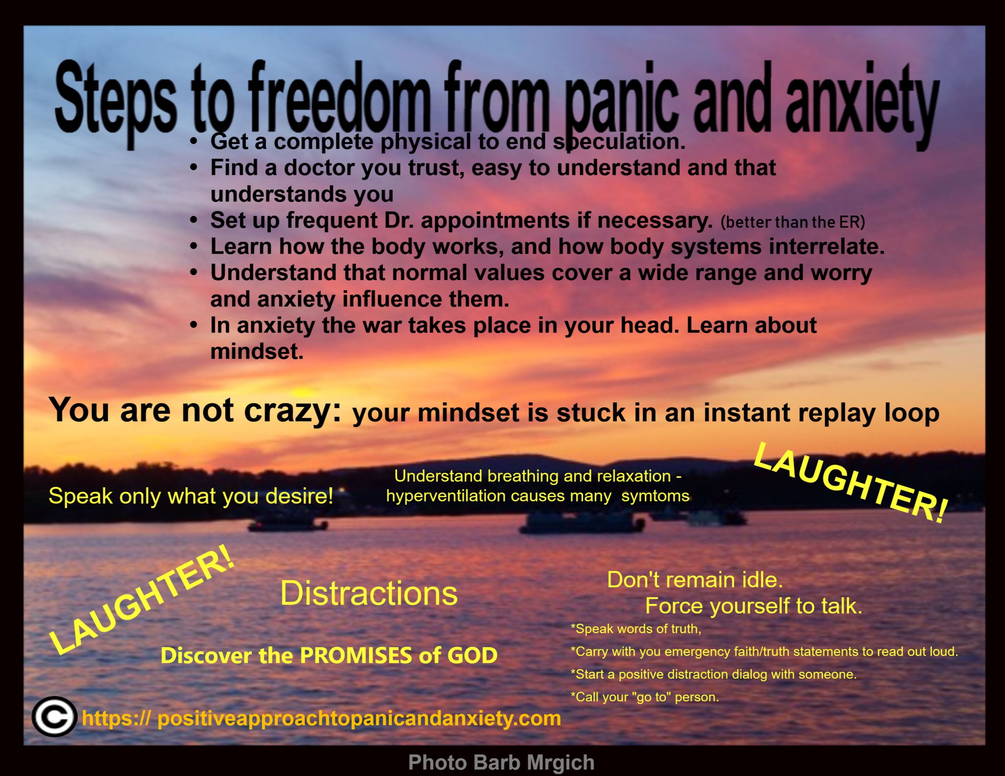We are going to start listing the steps that have led many to freedom from panic and anxiety. As we develop this page more details will be added.